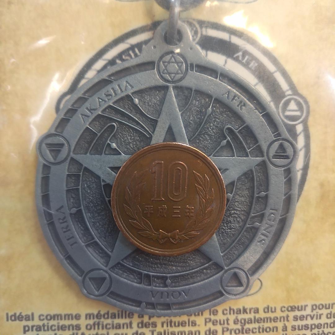 魔術儀式の際、このペンダントをアナーハタ・チャクラ(ハート・チャクラ―胸の部分)の上に身につけるのが理想です。同時に、建物や部屋の入り口にもペンタクルや保護のタリスマンをかけておくと良いでしょう。すべての元素をもれなくタリスマンとあなた自身にもたらし、神の保護を得ることができるでしょう。直径約6cmと、やや大きめのサイズです。