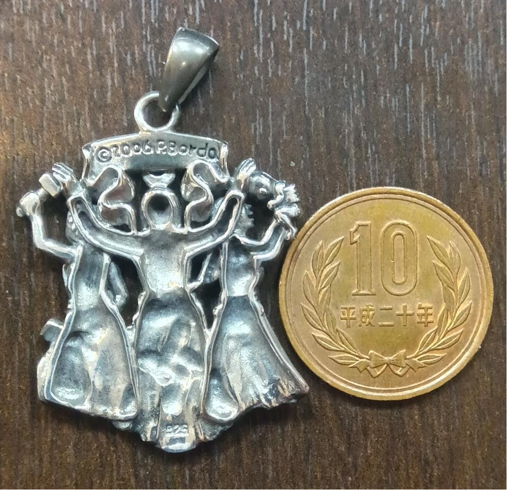 このペンダントは、中央にケルトの女神ブリギッド、そして左右に彼女に関連する象徴的な人物やモチーフが描かれています。