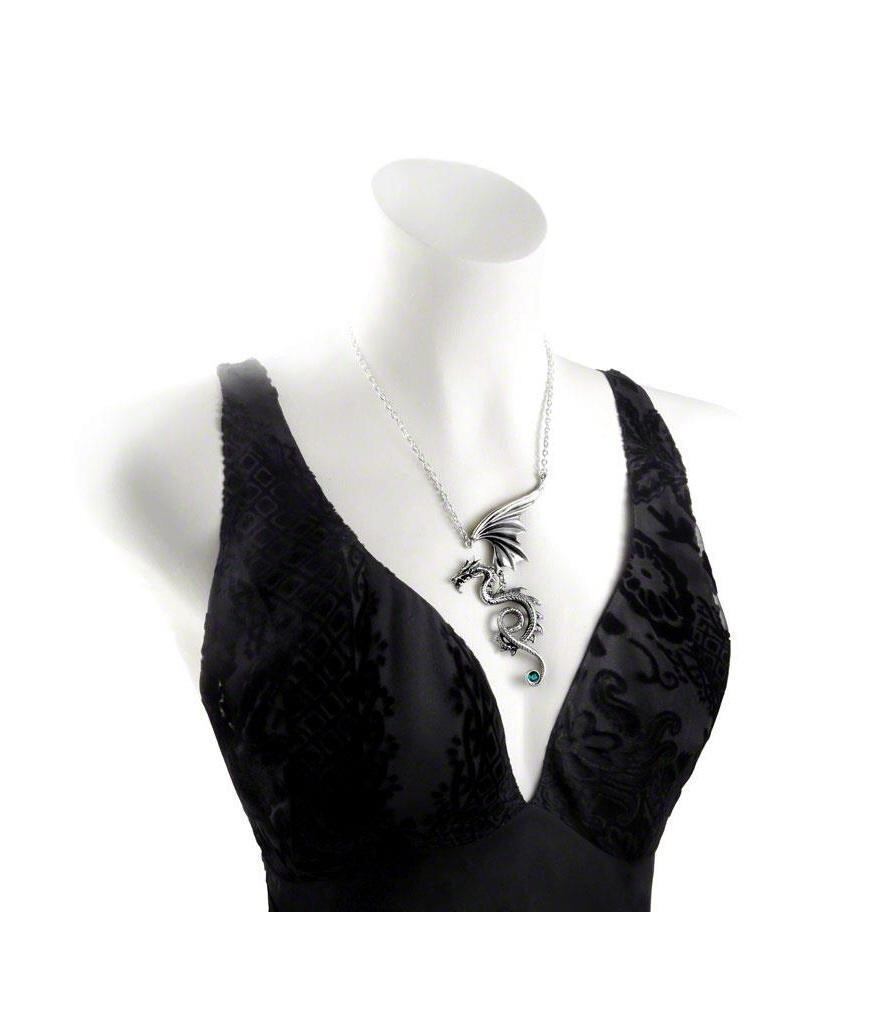 古代の秘術が生み出した神秘的な存在、ベスティア・リガリス。このペンダントは、異世界の精霊のゴシック様式の聖域への華麗な入り口の守護者として、あなたを導きます。関節式の翼とドラゴンの尾に保持されたエメラルドのスワロフスキークリスタルが、存在感を引き立てます。大きさは115×77×8mmで、チェーンの長さは580mmです。