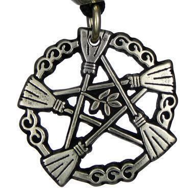 Witch Broom Pentagram Necklace - Wiccan Pentacle Pendant