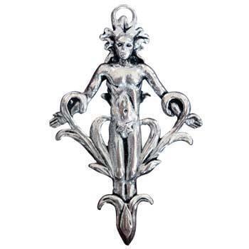 このペンダントは、マンドレイクの根が人間のような姿をしているという伝説を直接的に表現しています。植物の葉のような装飾が、その神秘的な植物としての側面を強調しています。