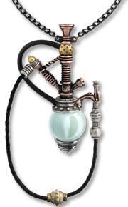 中東やアジアで伝統的に使用される喫煙具です。その独特な形状と喫煙方法は、エキゾチックな文化、リラックス、そして社交の場を連想させます。このペンダントでは、本来の喫煙具としての機能ではなく、その視覚的な特徴と文化的な背景が取り入れられています。(ギミック仕様)