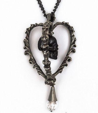 このネックレスでは、そのハートが単なるロマンチックな記号としてではなく、内側に「髑髏」を宿すことで、その意味が反転、あるいは深化しています。髑髏は「死」「終焉」「無常」といった避けがたい真実、すなわち「メメント・モリ」の最も直接的な象徴です。ハートの中に髑髏があることは、愛や感情の「死」、深い喪失感、失われた希望、あるいは人生の儚さそのものを表現しています。これは、肉体的な死だけでなく、精神的、感情的な「死」をも示唆し、深い悲しみや絶望、あるいは特定の関係性の終わりといった、人間の経験の暗い側面を表現しています。