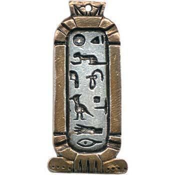 「カルトゥーシュ」とは、古代エジプトの象形文字(ヒエログリフ)でファラオや王妃の名前を囲む、楕円形の枠のことです。元々は「シェン(shen)」と呼ばれるロープの輪が起源であり、太陽の軌道や永遠を表すとされました。この枠の中に名前を記すことで、その名前が悪霊から守られ、永遠に続く力を与えられると信じられていました。カルトゥーシュは、権力と神聖な保護の象徴であり、壁画や記念碑、そして装身具に刻まれました。