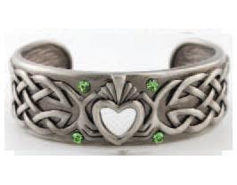 クラダ・リング(Claddagh Ring)が発祥であり、そのデザインがブレスレットにも応用されています。クラダリングの起源には諸説ありますが、最も有名な伝説は、17世紀にアイルランドのゴールウェイ出身の金細工師、リチャード・ジョイスの物語です。彼は海賊に捕らえられ奴隷として売られますが、その間に金細工の技術を習得します。故郷と恋人への想いを胸に、王様によって解放された後、故郷に戻り、14年間彼を待ち続けた恋人へ、このクラダリングを贈ったとされています。