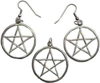 3 つのペンタクルはすべて直径 1 3/16 インチ、イヤリングの長さは 2 インチです。