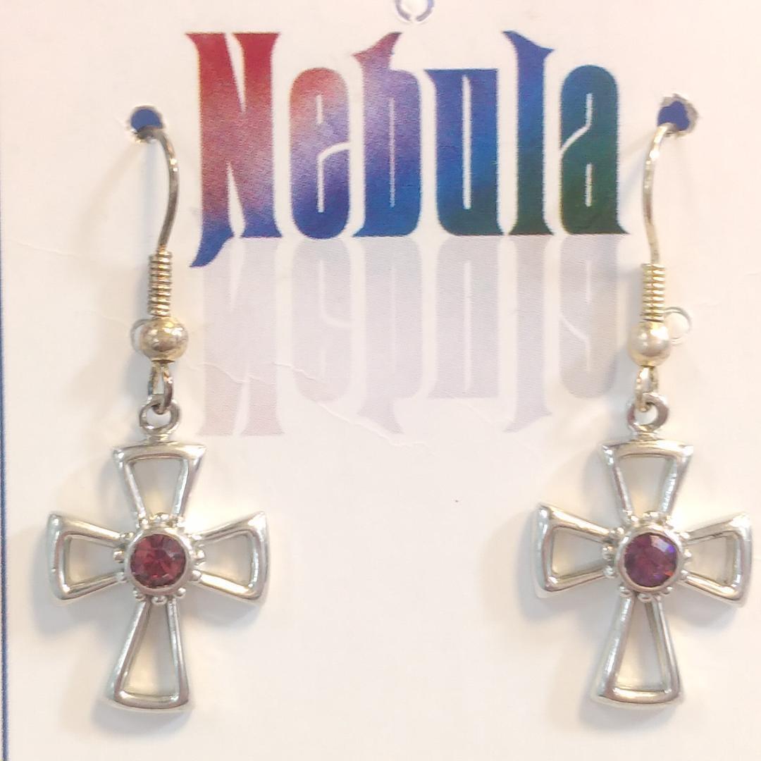 Nebula: Cross Earrings Gemstone Garnet