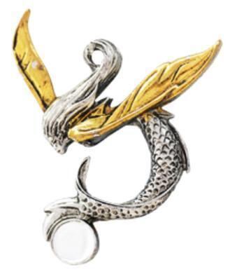 銀色の人魚の体と、金色に輝く妖精の翼が組み合わさったデザインが特徴です。人魚は深海の神秘とロマンスを、妖精は空の軽やかさと魔法を象徴します。この組み合わせは、「人魚姫」のように、異なる世界への憧れや、自身の存在を変えたいという強い願望を表現しているようです。