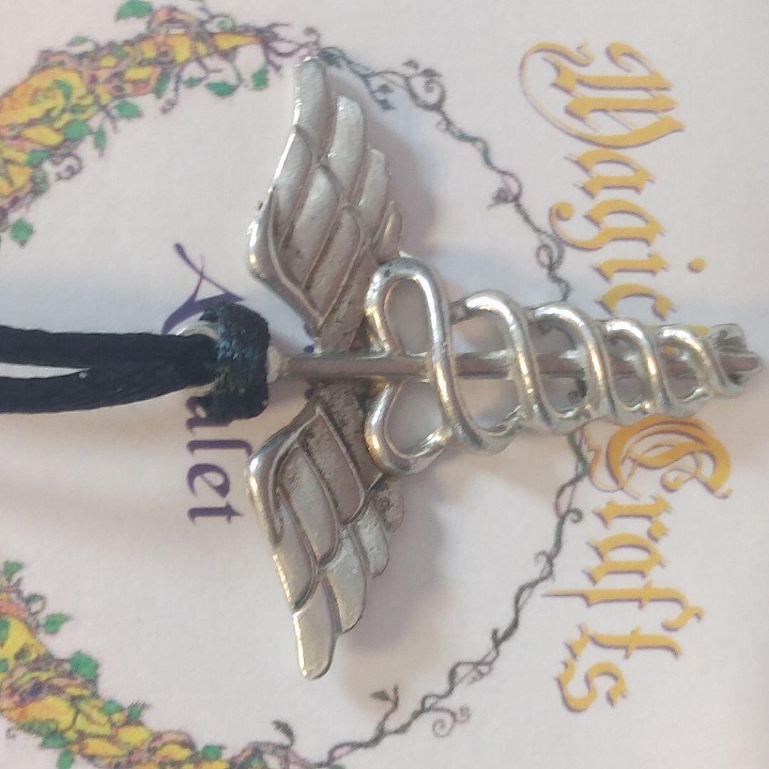 このペンダントを身につけることは、商業的な成功や交渉の円滑さを願う意味合い、あるいは医療従事者としての誇りや、健康への願いを込める意味合いがあるでしょう。誤用された歴史的経緯はあるものの、現代社会においては医学の象徴として広く認識されているため、その意味合いで身につける人も多いと考えられます。