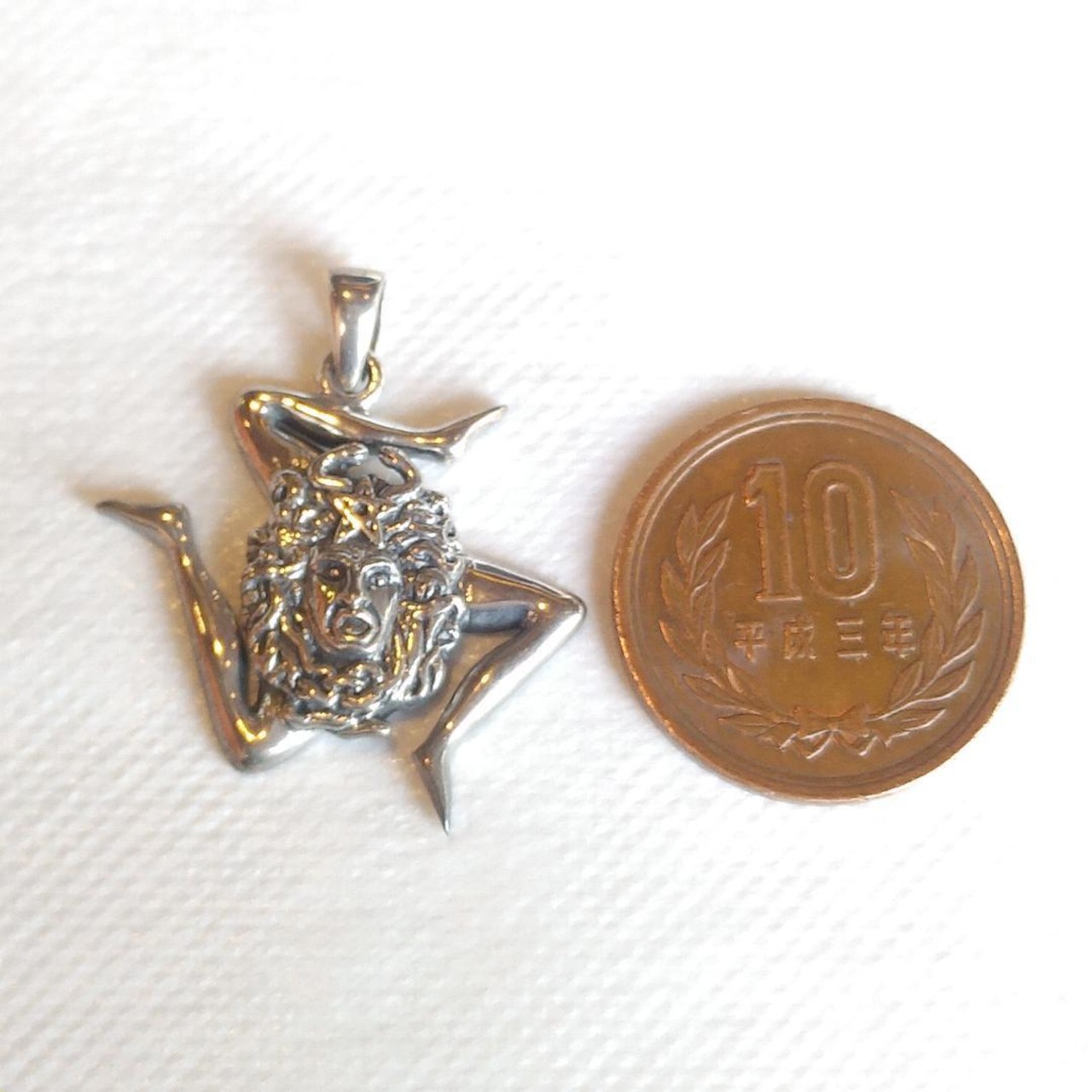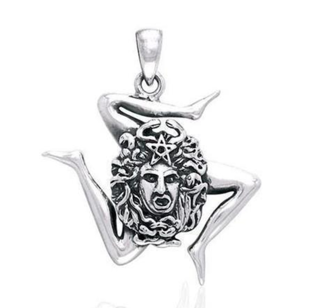 トリナクリアシルバーペンダントは、シチリアの古代の象徴的なシンボルを特徴としています。