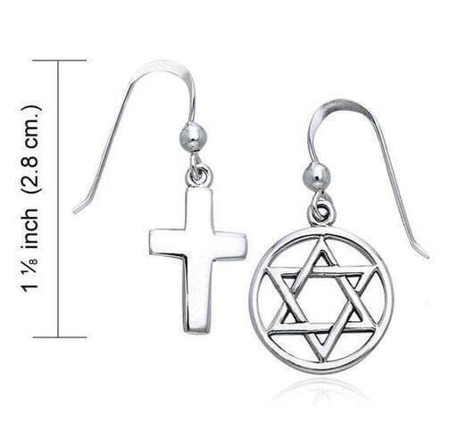 十字架(Cross)とダビデの星(Star of David)のピアスは、二つの偉大なアブラハムの宗教、キリスト教とユダヤ教の象徴を組み合わせたジュエリーです。この組み合わせは、非常に深い個人的・宗教的な意味合いを持つことがあります。