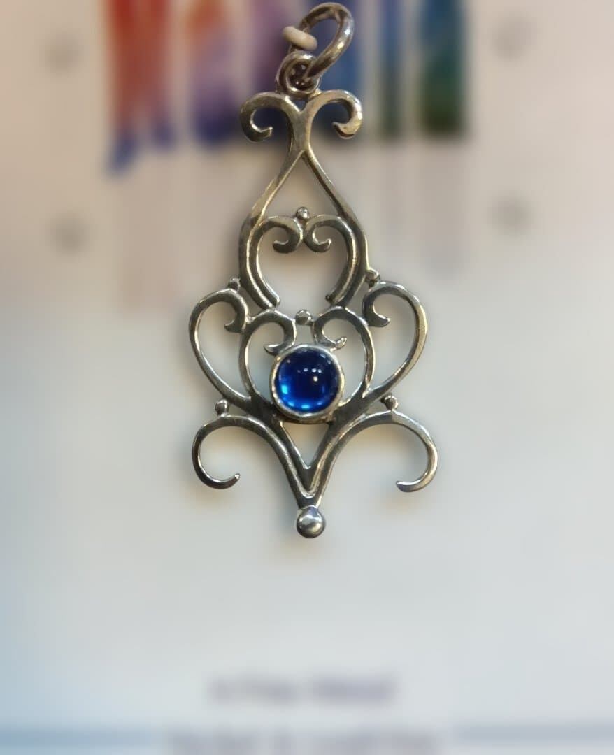 「永遠に続く愛や調和」の願いを込めた蔓草模様と、「知性や忠誠心、そして保護」を象徴する青い宝石の組み合わせにより、愛情の護符や精神的な安寧をもたらすお守りとして機能すると言えます。