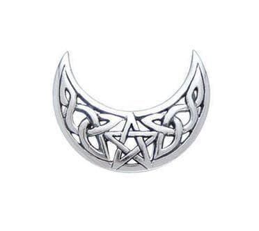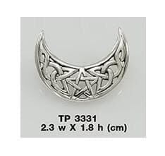 このシルバーペンダントは、三日月と五芒星(ペンタグラム)、そしてケルト風の装飾を組み合わせたデザインで、複数の歴史的、伝統的、文化的な意味合いを持っています。