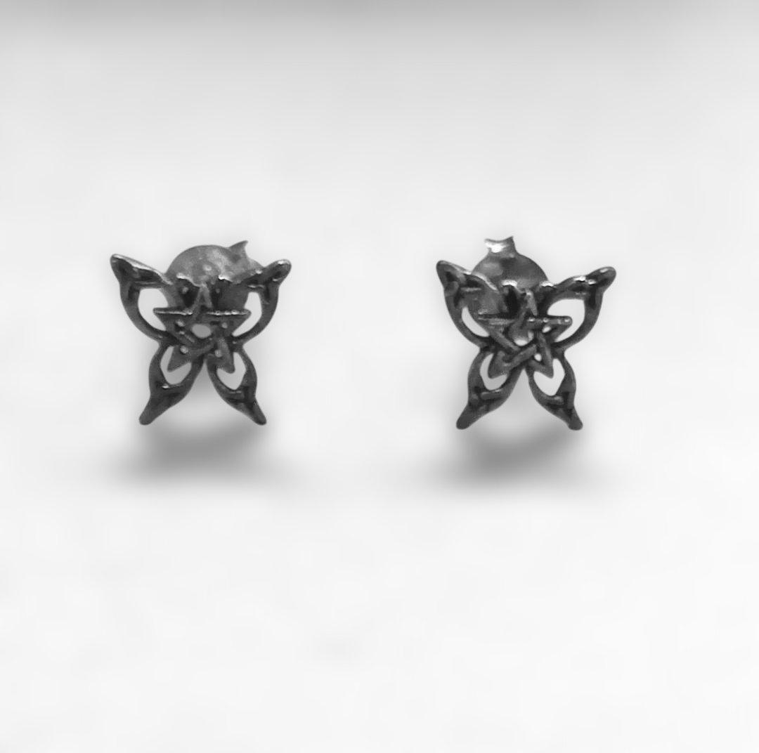 DD: Butterfly Pentacle silver Stud Earrings TER396