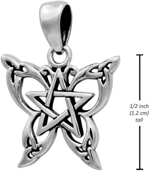 Dryad Design: Women's Butterfly Pentagram Pendant - Small .925 Sterling Silver Pagan Pentacle Wiccan Jewelry TPD610