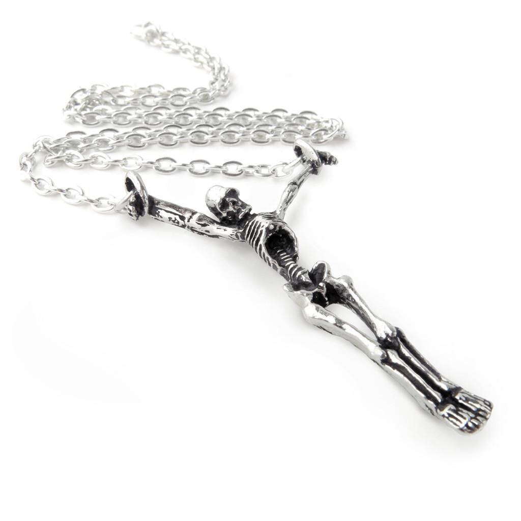 十字架に架けられた骸骨という、非常に挑発的で象徴的なデザインのペンダントです。このモチーフは、「Lost Soul(失われた魂)」という名前と合わせて、ゴシック文化における死生観と宗教観を深く反映しています。