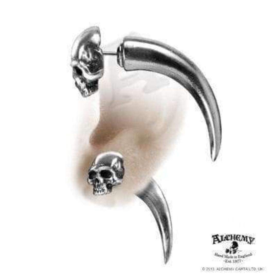 ALCHEMY GOTHIC:TOMB SKULL HORN ear studs