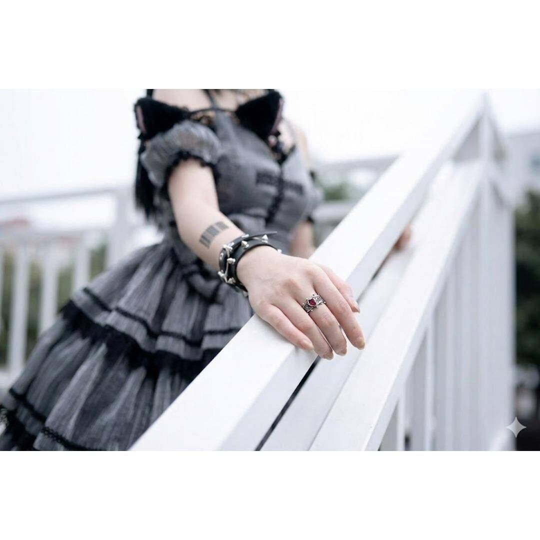 王冠という高貴なシンボルに、心の傷や情熱を示すハートを組み合わせ、ダークな素材で表現することで、「完璧さの中の欠落」や「権威の裏側にある個人の苦悩」という、ゴシックの核心的な美学を表現しています。