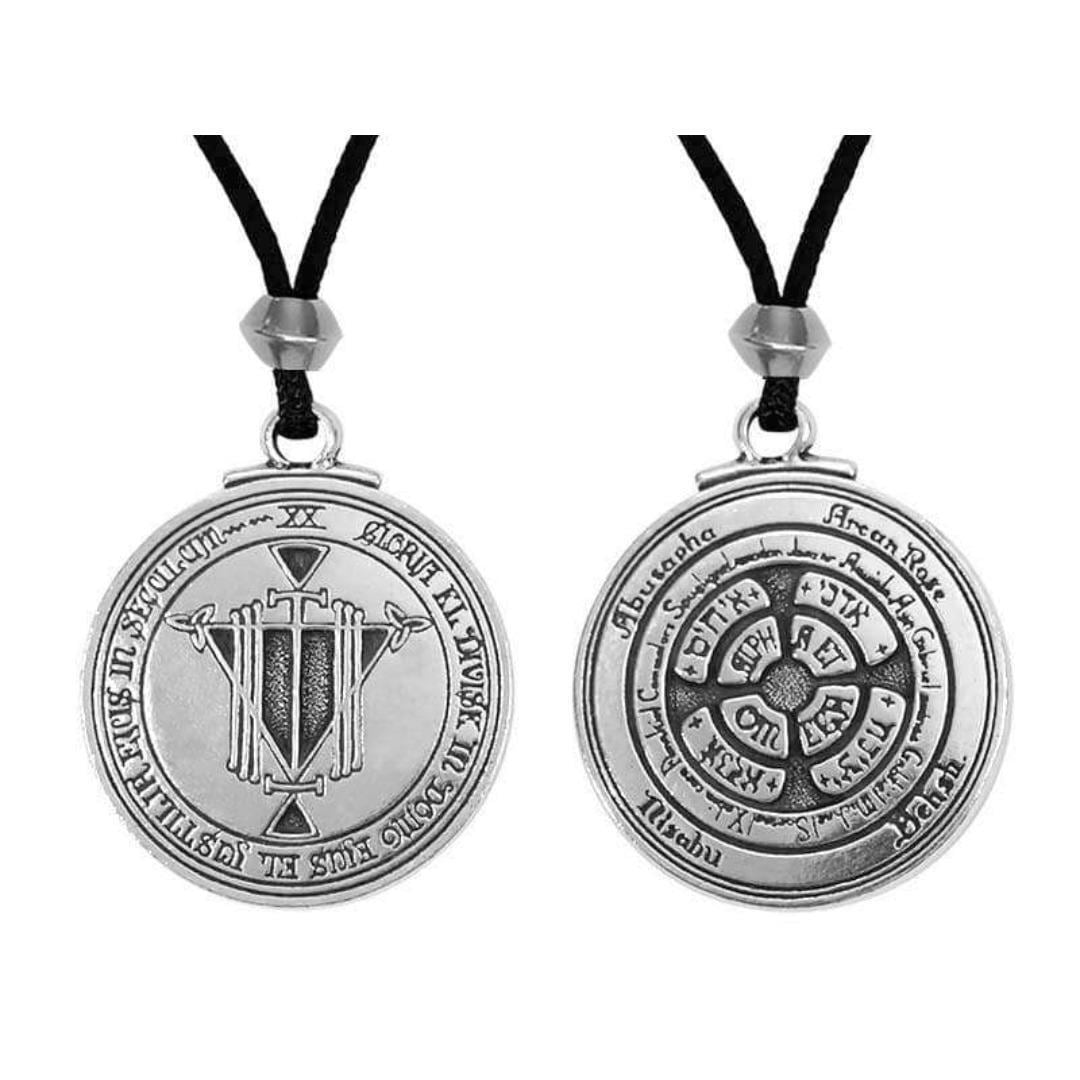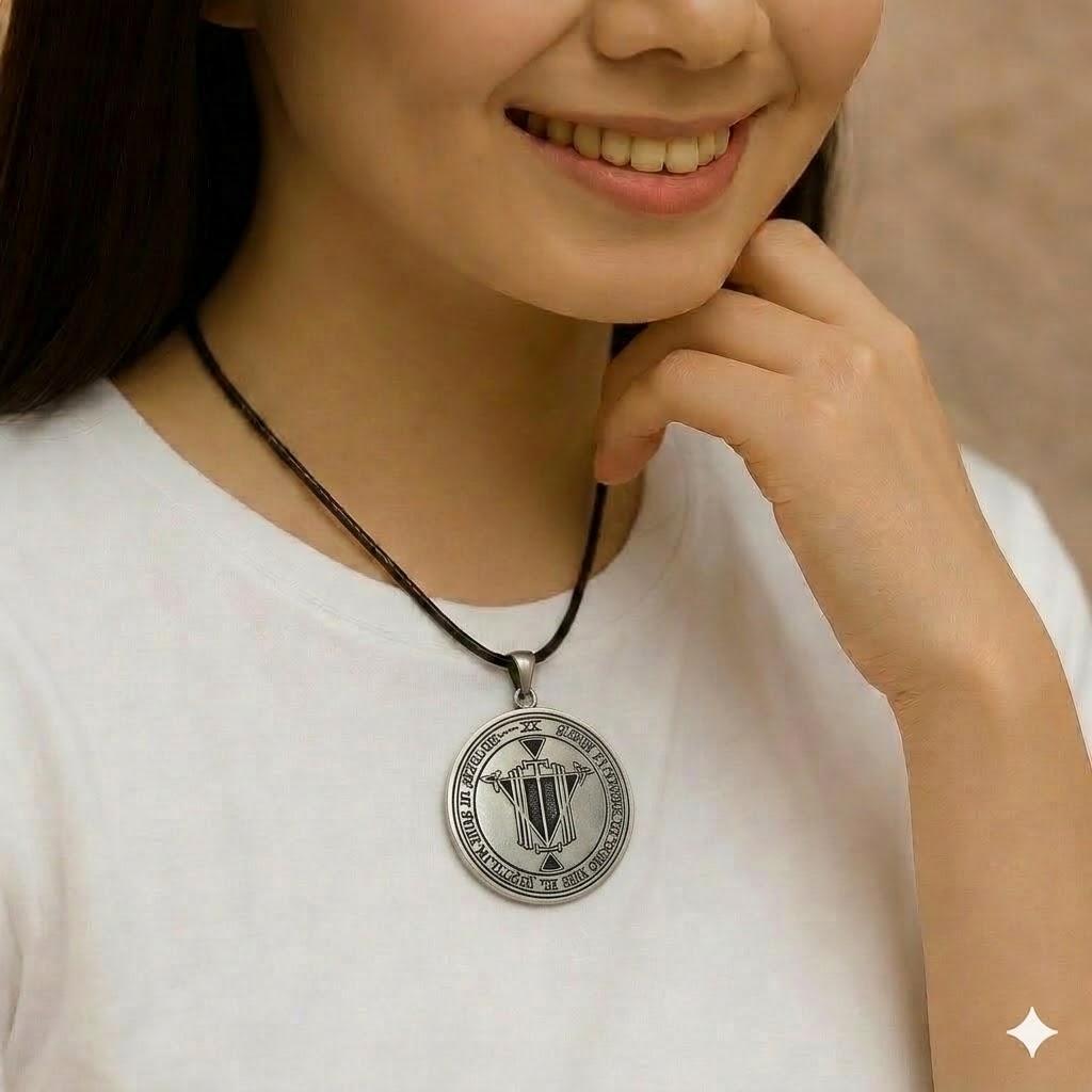 1. この図案のルーツは、14世紀から15世紀頃に成立したとされる魔術書『ソロモンの鍵』にあります。西洋魔術の伝統において、木星(ジュピター)は「寛大さ」「拡大」「幸運」「富」「権威」を司る惑星とされています。このペンダントの表面に描かれた幾何学的なシンボル(シジル)は、木星の霊的なエネルギーを物質世界に引き寄せるための「アンテナ」のような役割を果たすと信じられてきました。