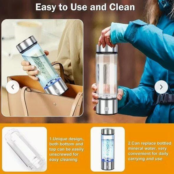 容量は420mlで、耐久性に優れた食品グレードのホウケイ酸ガラス製。安全かつ清潔にお使いいただけるため、安心して日常的にご使用いただけます。充電時間は約2~3時間で完了し、フル充電で約15~20回分の水素水生成が可能です。底部と上部が簡単に取り外せる設計なので、使用後のお手入れも非常に簡単。常に清潔な状態を保てます。