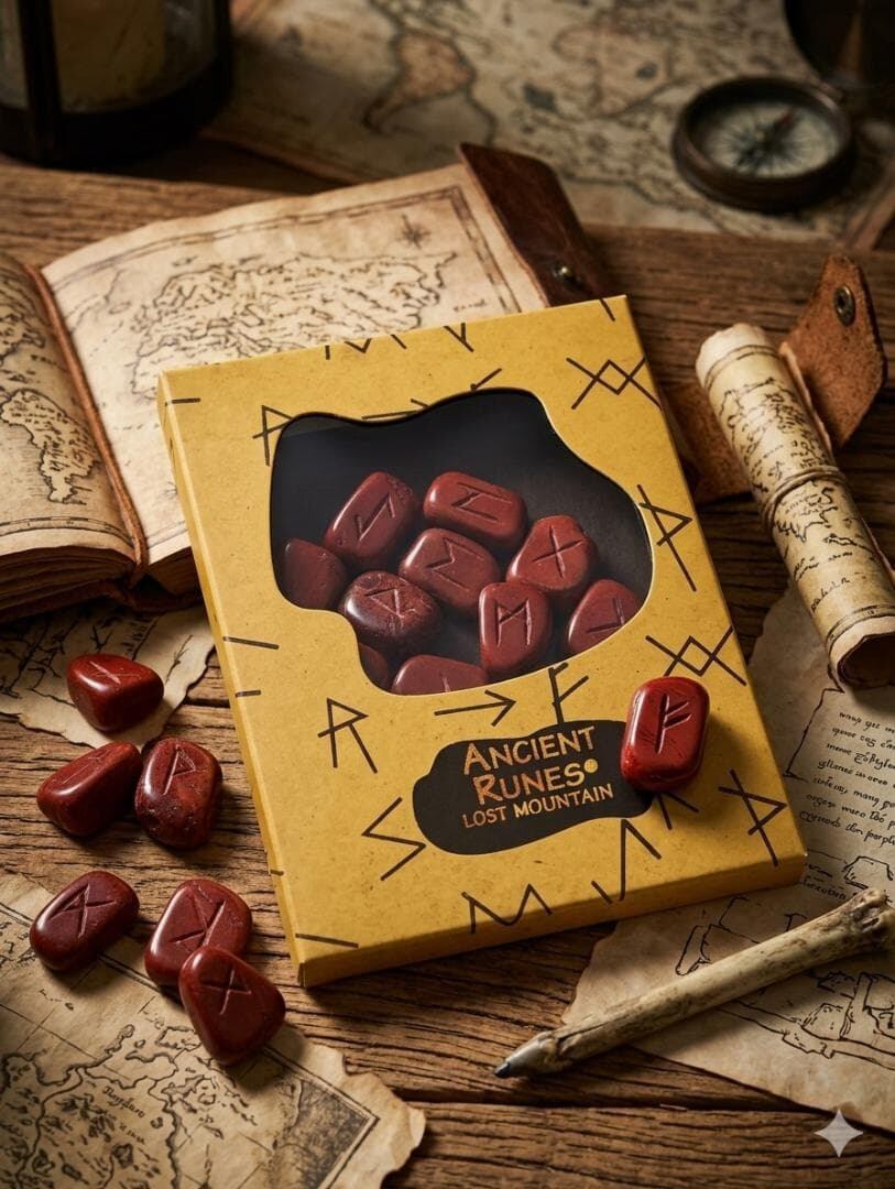 古代北欧の神秘を背景にした「ルーンセット」ですね。このルーンの歴史や文化、使用方法、そして記載されている「ロストマウンテン(LOST MOUNTAIN)」の解釈について解説します。