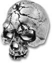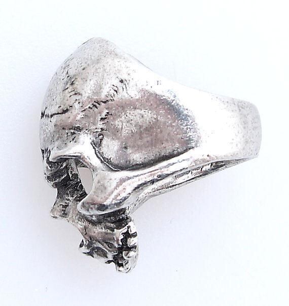 あごがなく、眉をひそめ、壊れた頭蓋骨の大きくて印象的なピューター リング。