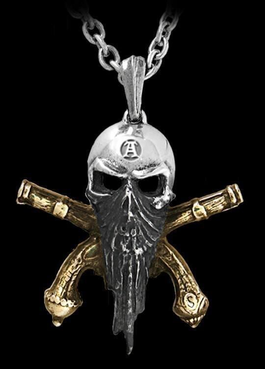 この錬金術ペンダントは、有名な追いはぎ、ウィリアム スペンサー、1729 年没、31 歳の紋章です。微妙なトライトーン、磨かれた頭蓋骨、黒いマスク、アンティーク ゴールドのピストルが特徴です。すべてのペンダントは上質な英国産ピューターで鋳造および手作りされており、多くは追加の高品質クリスタルとコンポーネントを備え、手メッキまたはその他のツートン仕上げで、ニッケルフリーのチェーンまたは適切な長さのその他のネックレスが付属しています。