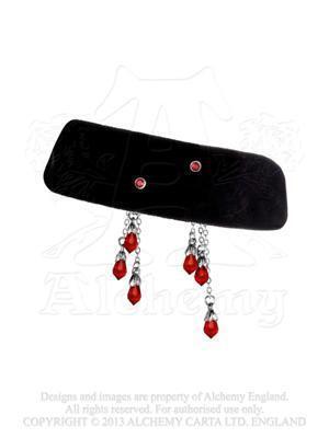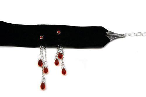 「レヴナントは噛まれても、いつも打ちのめされてしまう。」スワロフスキー クリスタルの「噛み跡」と流れ落ちる「血」の滴をあしらった、柔らかいベルベットのバンドチョーカーです。