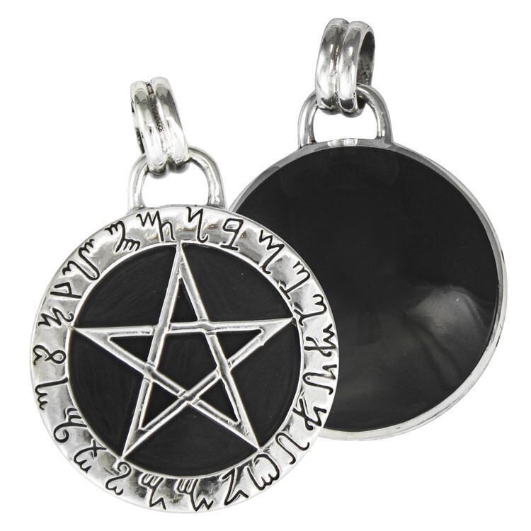 黒魔術の秘儀言語を刻まれたDD シルバー スクライングディスク Theban 五芒星は、実践派魔女のために作られた特別なアクセサリーです。真っ黒なオニキススクラインディスクと925スターリングシルバーの組み合わせは、強力なエネルギーを持ち、あなたの魔術のパワーを高めるでしょう。