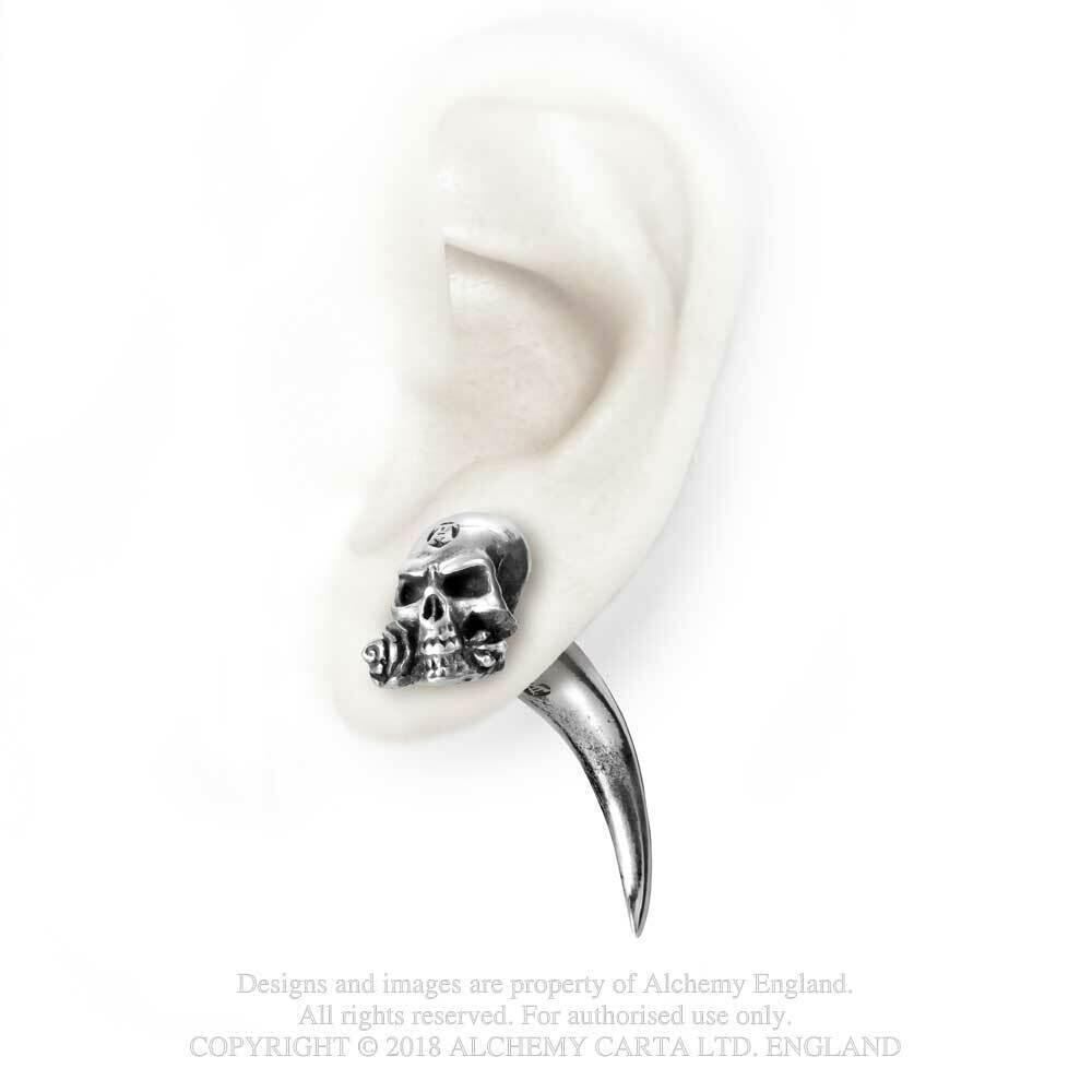 惹きつける力を持つアルケミストホーン イヤー スタッドが登場しました!クラシックなデザインに、モニュメンタルなデスヘッドを添えた、個性的な一点です。耳元を彩り、存在感を放つこと間違いなしです。