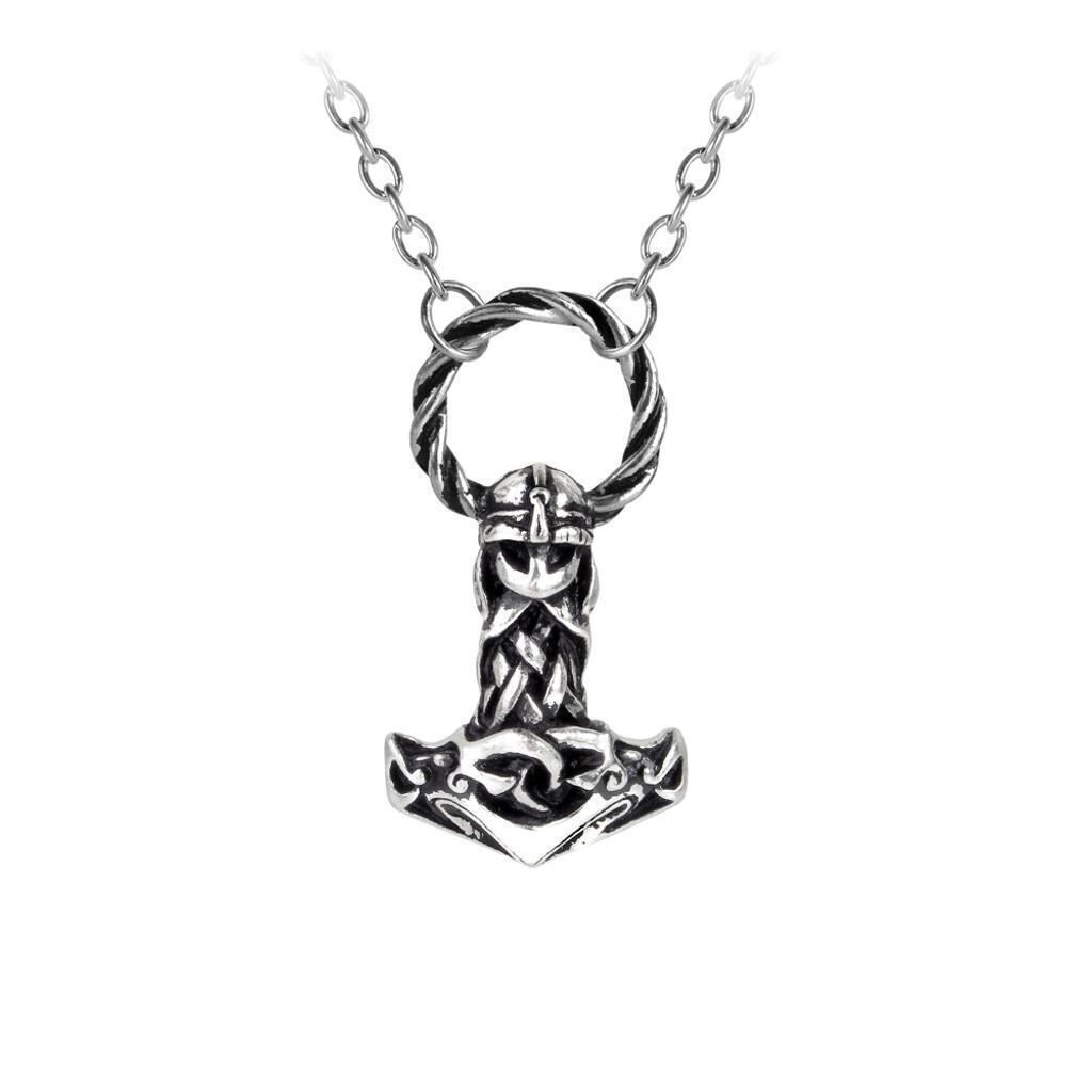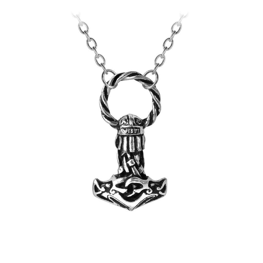 Alchemy GothicのMjollnirミョルニルバイキングトール槌は、バイキングのための控えめなメタルウェアソリッドピューターハンマーペンダントです。このハンマーは、北欧の雷神であるトールの魔法の恐ろしいハンマーを模したもので、スプリットチェーンが付いています。