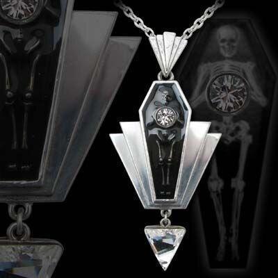 アルケミーゴシック: ディミモンディーヌペンダントは、デコ時代の快楽主義的なスタイルを取り入れた魅力的なアクセサリーです。ピューター素材とエナメル樹脂を使用し、高品質な仕上がりになっています。