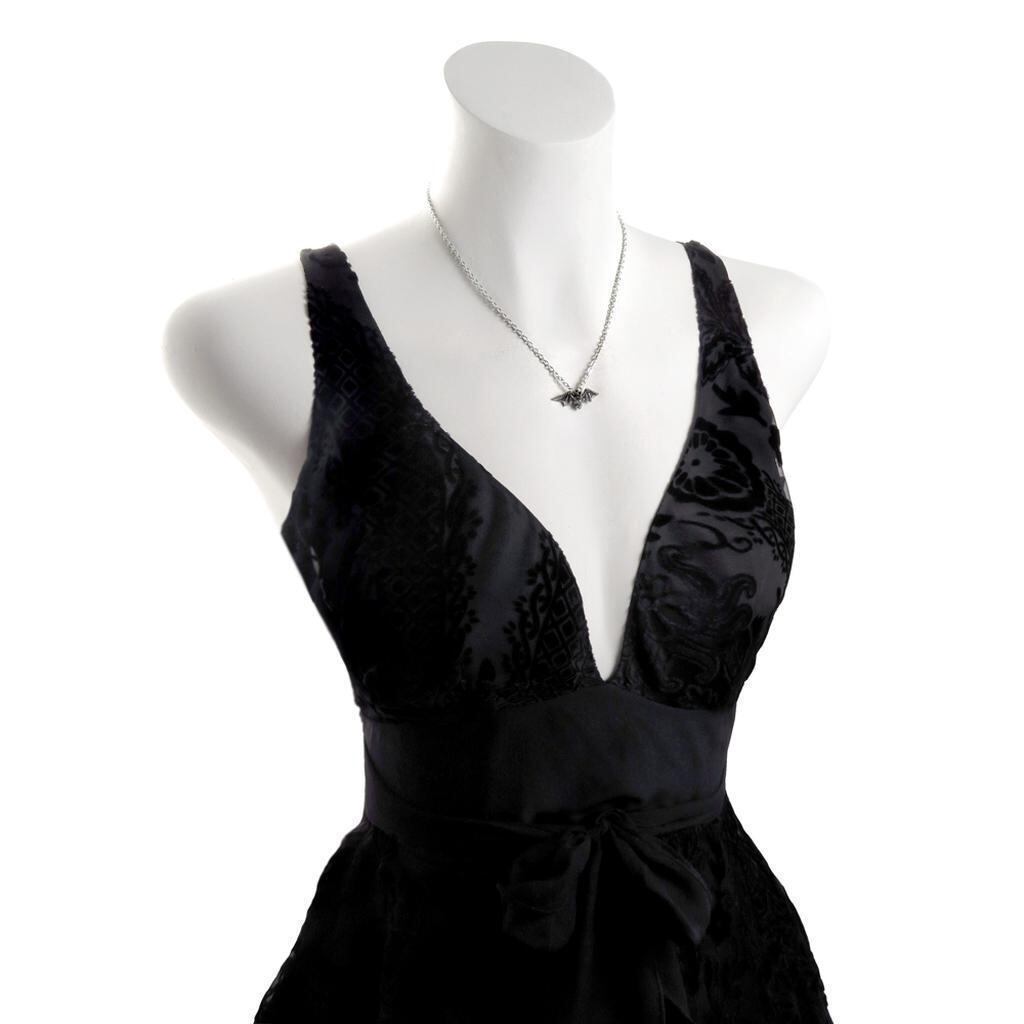 所有者の代替傾向を慎重に目覚めさせます。古典的なゴシックイメージをむき出しにする控えめな作品。翼を広げた小さなピューターフライングバットペンダント。所有者の代替傾向を慎重に目覚めさせます。