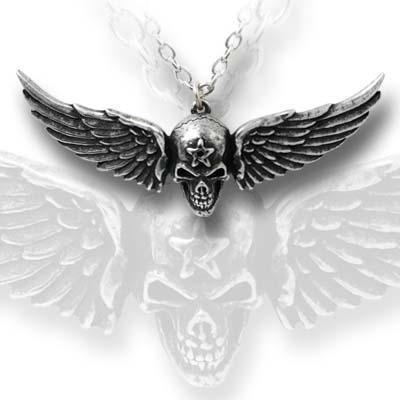 ゴシック錬金術ペンダント、翼のあるドクロ 幅8cm、高さ1.5cm