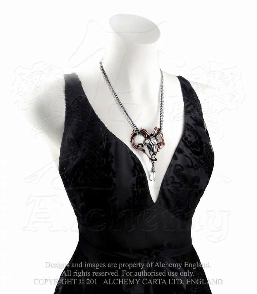 ペンダント長さ3.5インチ。 ジュエリーはスワロフスキークリスタルで飾られています。 メーカー:アルケミー ゴシック (イングランド) 材料:ピューター 色:メタリック 寸法:96 x 68 m チェーンの長さ: 510 mm