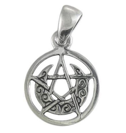 スターリングシルバーの小さな三日月ペンタクルサークルペンダント