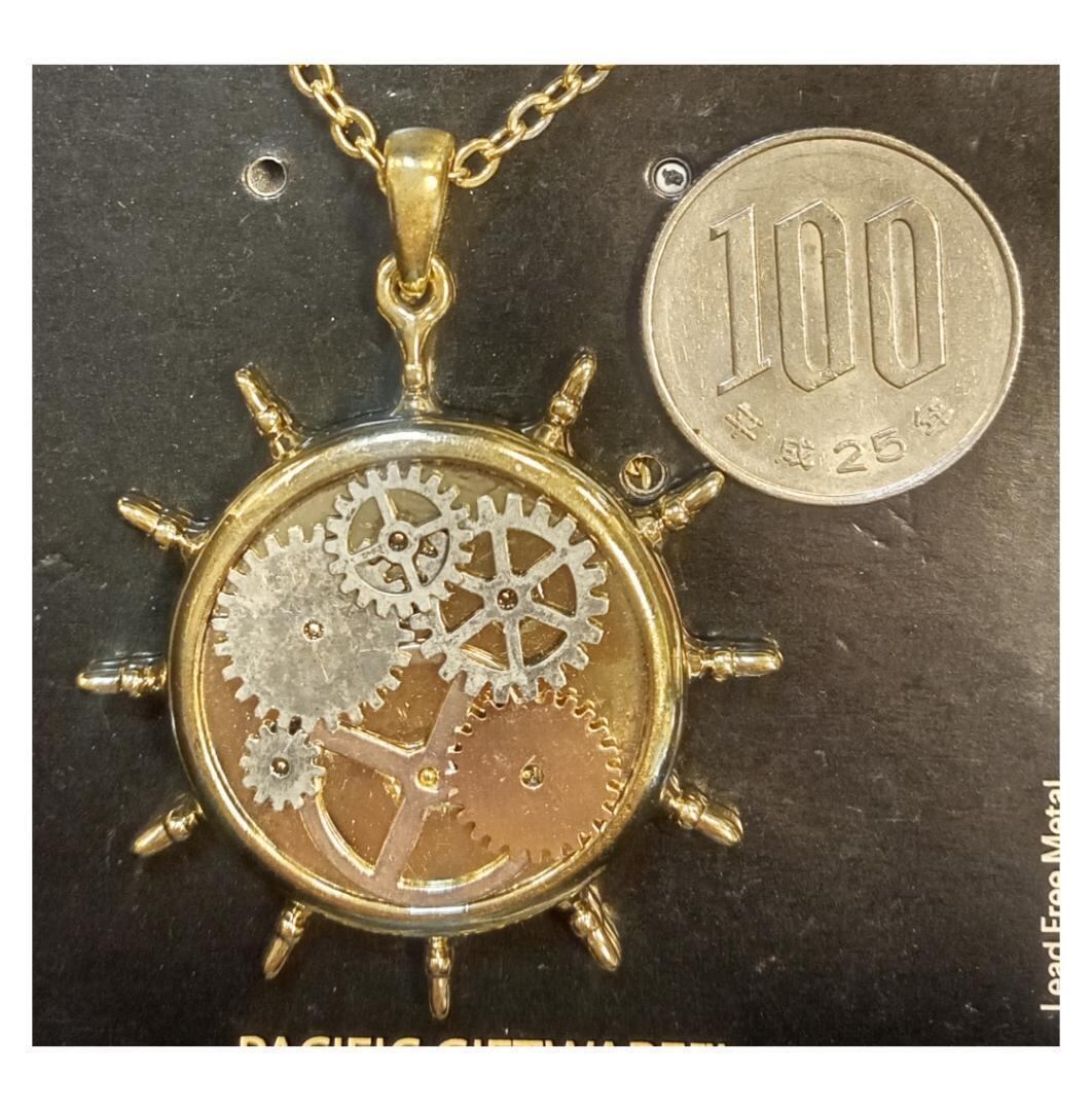 スチーム パンクなスタイルの船の車輪 2 つのトーンのペンダントネックレス ゴールド