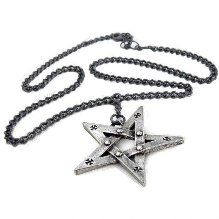 魔法のように刻まれた権力の象徴である巨大な鍛造された中世の五芒星は、あらゆる脅威に対して警告を発します。着用者を悪から守るシグネチャーピース、ちりばめられた大きな逆五芒星。