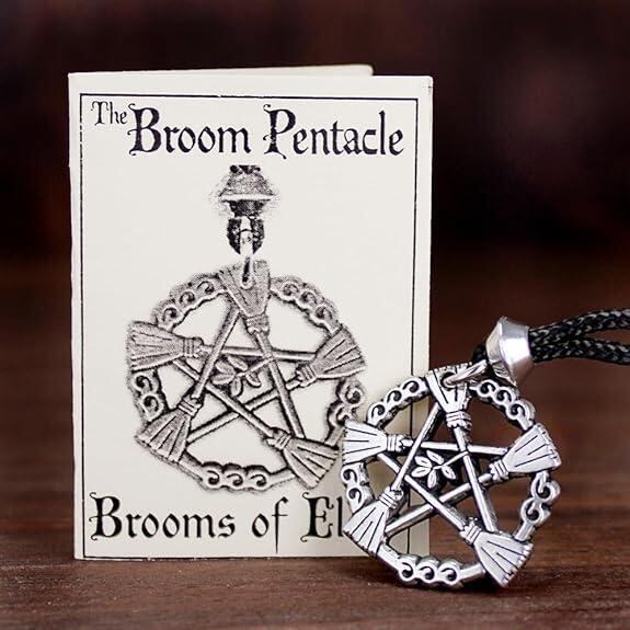 魔女のほうき五芒星ペンタクル ネックレスでウィッカの保護を受け入れましょう。このペンダントは、強さとポジティブなエネルギーの象徴である五芒星が、浄化されるニワトコの木で囲まれているのが特徴です。このウィッカからインスピレーションを得たジュエリーでバランスを見つけ、ネガティブな感情をそらしましょう。