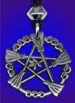 Witch Broom Pentagram Necklace - Wiccan Pentacle Pendant