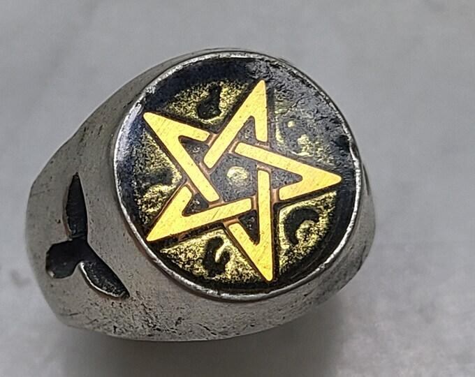 人生を豊かにする力で魔術師の力を呼び寄せる。ソリッドブロンズ五芒星がクリアエナメルでリング内にセットされ、魔法を活性化する5つのシジルが散りばめられています。富, 豊富, 富裕, 財, 財貨, 富力, 資力, 貨財.